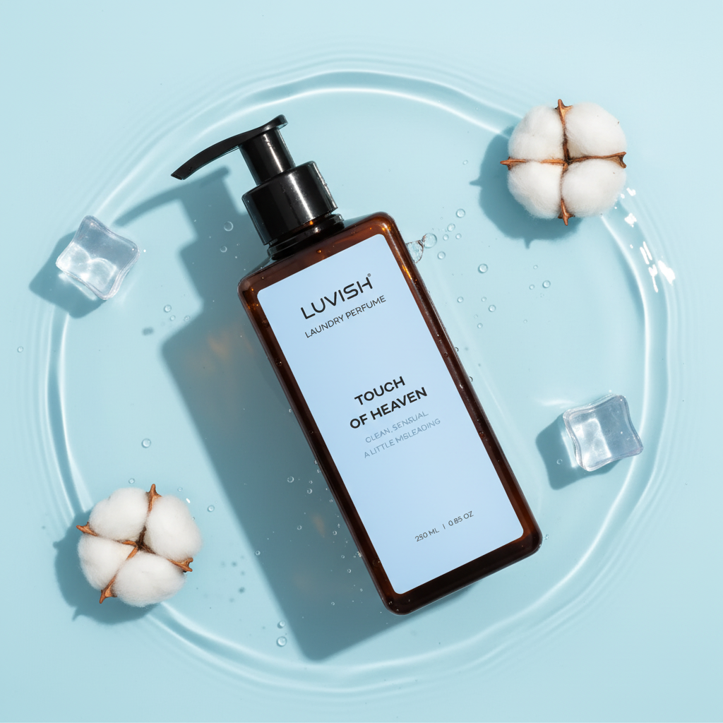 Ľadovo svieža bavlna, priezračný tón čistoty a jemné drevité iskry.